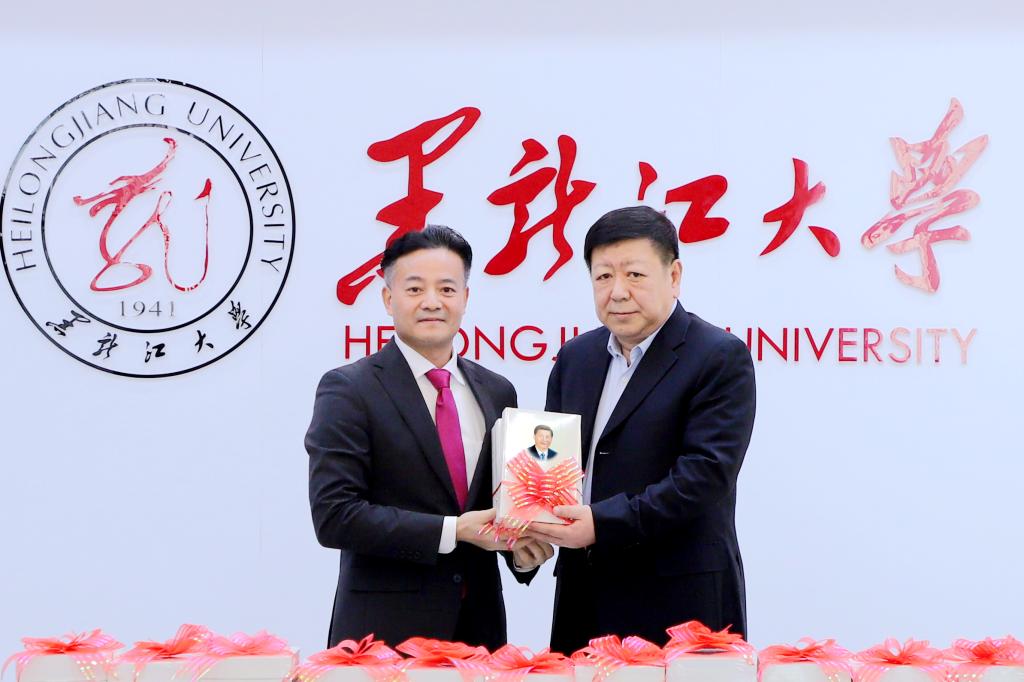 王永清代表学校向北京崇学文化发展有限公司捐赠图书、助力学校教育事业发展表示感谢。他指出,北京崇学文化发展有限公司为学校捐赠《习近平谈治国理政》多语种书籍意义重大。受赠的《习近平谈治国理政》英、法、俄、阿、西、葡、德、日等多语种系列图书,不仅丰富了学校图书馆馆藏文献资源,还为外语师生对照学习相关语种的专业词汇提供了文献保障。他强调,学校图书馆、马克思主义学院、相关外语学院要利用好捐赠图书,加强学习宣传和研究阐释,进一步发挥学校对外合作交流优势,期待同北京崇学文化发展有限公司加强交流与合作。