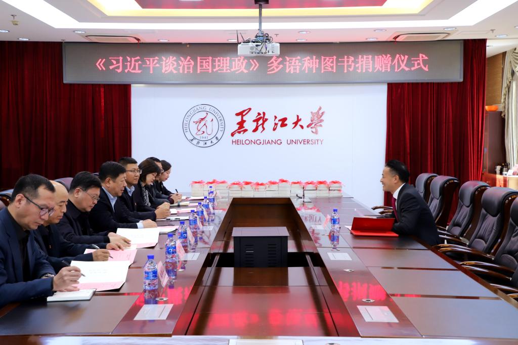 11月13日下午,《习近平谈治国理政》多语种图书捐赠仪式在beat365中国官网主楼A802会议室举行。校党委书记王永清,北京崇学文化发展有限公司负责人余富文出席捐赠仪式。党委宣传部、社会科学处、马克思主义学院、图书馆、俄语学院、西语学院、东语学院相关负责同志参加捐赠仪式。校党委常委、宣传部部长杨其滨主持捐赠仪式。