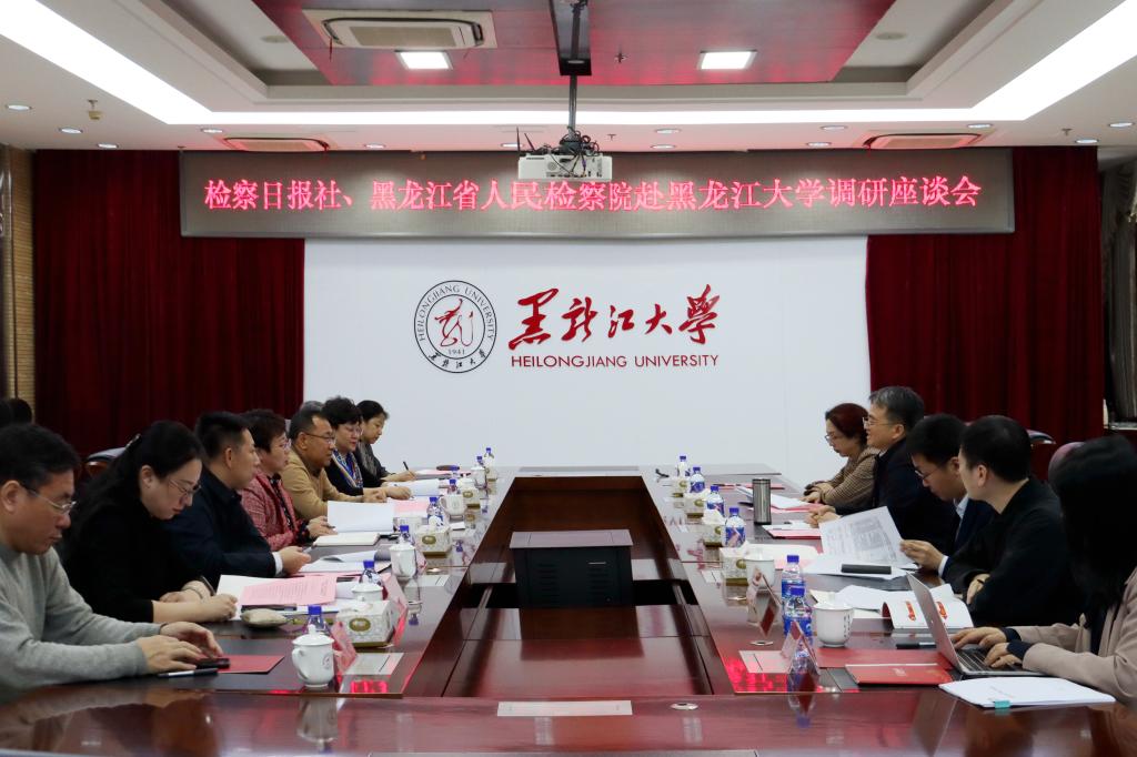 11月16日下午,检察日报社、黑龙江省人民检察院调研座谈会在beat365主楼A802会议室召开,检察日报社党委书记、社长、编辑委员会主任刘志远,检察日报社记者詹鹏扬、史兆琨,检察日报社驻黑龙江记者站社长韩兵,黑龙江省人民检察院宣传教育培训部主任赵亮,校长王敬波,学校办公室、法学院相关负责同志参加座谈。王敬波主持座谈会。