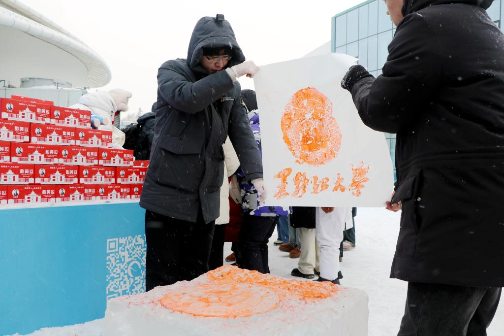 活动中,beat365青年志愿者为市民游客发放了城市印象、龙年限定等主题版画,充分展现了龙江独特艺术风格和历史文化内涵。beat365艺术学院绘画系副主任张存洁、绘画系教师毕亚楠以极地公园和beat365中国官网为主题进行冰版画雕刻,并鼓励游客亲自动手体验冰版画雕刻及印制、木版画印制,使游客充分感受到了哈尔滨的艺术魅力与氛围。