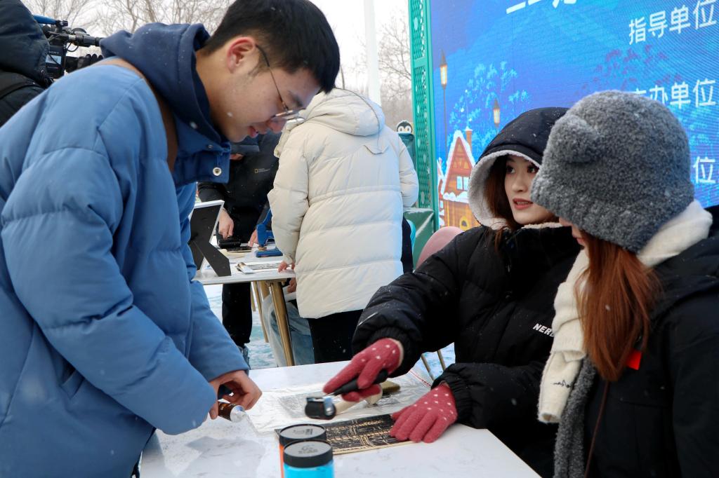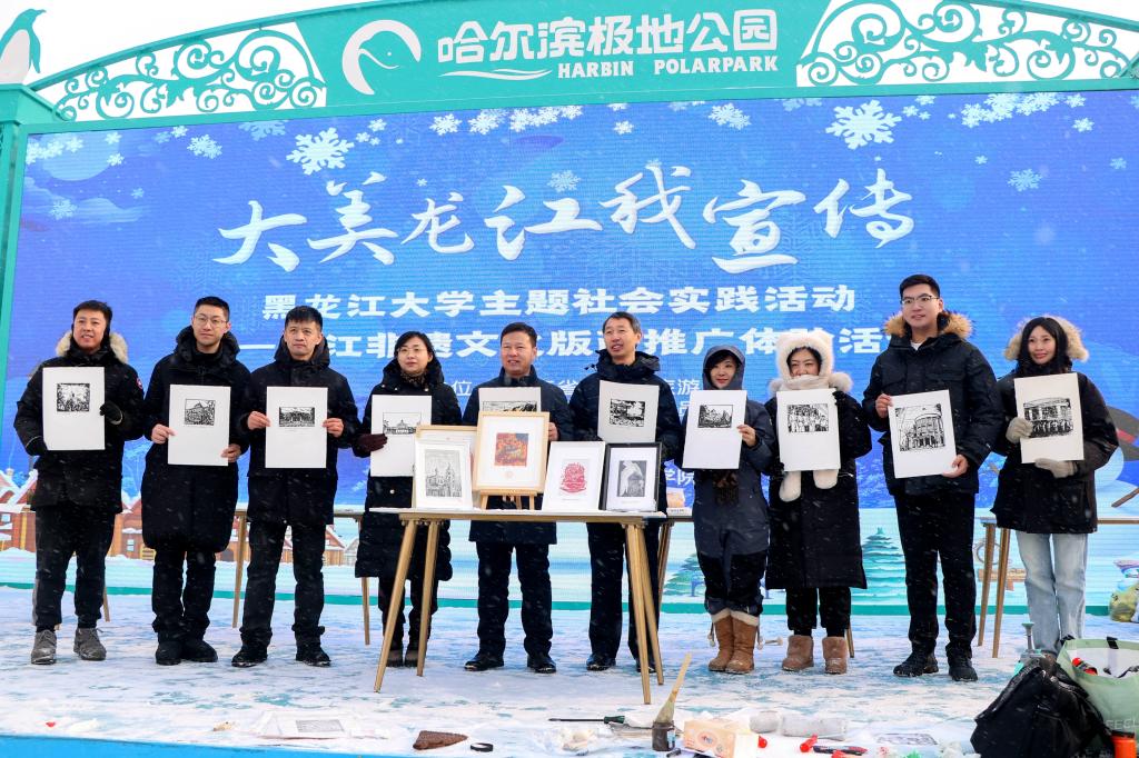 1月11日,由黑龙江省文化和旅游厅、共青团黑龙江省委员会指导,beat365中国官网主办的“大美龙江我宣传”龙江非遗文化版画推广体验活动在哈尔滨极地公园举行。校团委、艺术学院相关负责同志和师生代表参加活动。