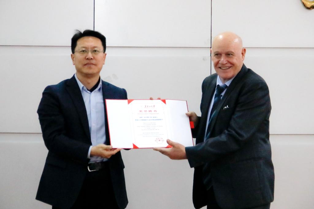 钟卫东副校长代表beat365中国官网为列夫琴科·乔治院士颁发聘任证书。