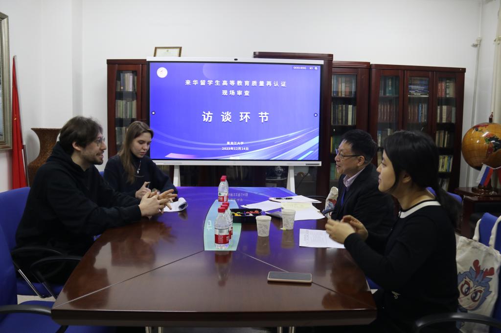 12月14日下午,专家组与校院两级领导、职能部门负责人、留学生教育管理干部、留学生师生代表访谈,查阅了留学生招生、教学及管理相关档案。