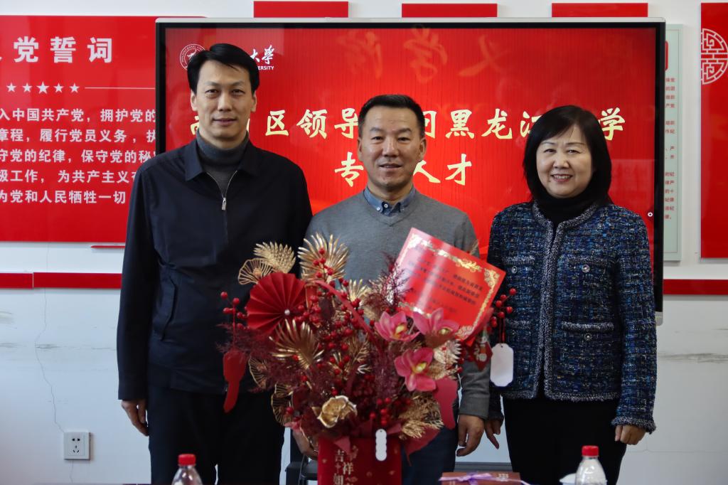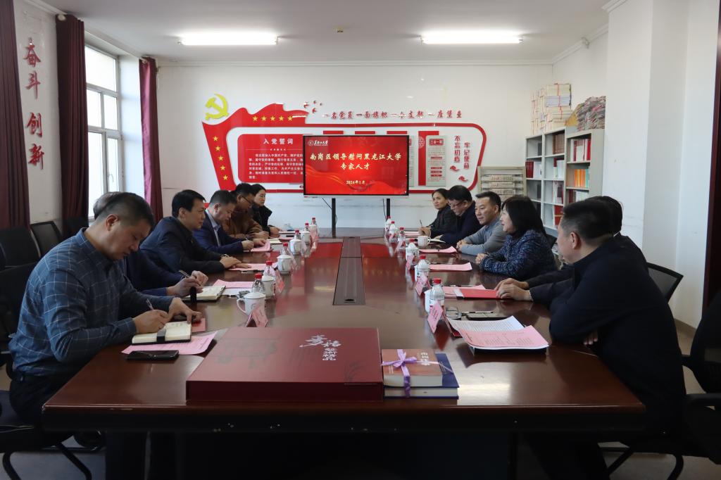 1月24日下午,南岗区人民政府区委副书记、区长任海龙一行走访国家百千万人才获得者、生命科学院教授宋福强并于主楼A518会议室进行座谈。副校长于文秀,学校办公室、组织部、科学技术处相关负责同志参加座谈。