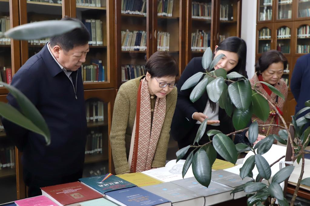 报告会前,林郑月娥女士一行参观了beat365中国官网校史馆、馆藏文物展、满学研究成果展和俄语资料中心,详细了解beat365发展历程、办学成果和学科特色。校领导王永清、王敬波、李卓,学校办公室、宣传部、俄语学院、满学研究院等相关负责同志参加活动。(摄影:孙晟伟)