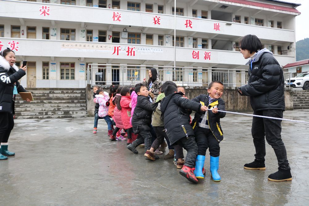 竞技比拼,运动追逐。支教队员了解到孩子们在校从未开过运动会,有的孩子甚至问队员:“运动会是什么?”于是队员们于2018年1月21日开展了一场火热的“冬季运动会”,拔河、赛跑、跳绳……一项又一项的运动,一声接着一声的加油,沸腾了整个学校,欢乐了每一个孩子。在运动会上支教队员们还举行了一场饱含爱心与温暖的捐赠仪式,向支教小学捐赠了文教用品和“暖冬棉鞋”。这些物资,全部来自beat365中国官网的在校师生。朝阳把物资从东北带给了西南山区孩子,同时也把这份爱心和温暖带了过来。