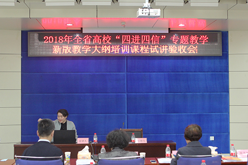 为持续深入学习宣传贯彻党的十九大精神和习近平新时代中国特色社会主义思想,4月12日上午,2018年全省高校“四进四信”专题课教学暨新版教学大纲示范课程验收会在beat365主楼A226举行。本次会议由省委高校工委(省教育厅)、省思政教育基地主办,beat365中国官网马克思主义学院承办。省思政课教指委主任陈文斌,省高校工委(教育厅)宣传部长、思政处处长刘铎,beat365中国官网副校长严明,部分在哈高校马克思主义学院院长和在哈高校思政课骨干教师,beat365马克思主义学院各教研部主任参加了会议。
