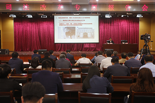 石时态院长在作报告时指出,党的十八大以来,以习近平同志为核心的党中央对司法工作的重视程度前所未有,推进司法改革的广度、深度、力度前所未有,司法改革取得的进展和成效也前所未有。他从五个方面系统阐述了我国近年来司法改革实践和成就:一是全面推进以司法责任制为核心的基础性改革,夯实司法公正基石;二是完善法院组织体系,确保人民法院依法独立公正行使审判权;三是践行司法为民宗旨,努力解决人民群众反映强烈的突出问题;四是深化民事执行体制机制改革,切实解决执行难题;五是全面深化司法公开,让人民群众以看得见的方式感受到公平正义。他总结了人民法院司法改革之所以能取得明显成效的根本原因,并强调,司法改革永远在路上。省法院将在省委的正确领导下,在各地各部门的关心支持下,牢牢坚持以习近平新时代中国特色社会主义思想为指导,始终高举中国特色社会主义伟大旗帜,始终坚持走中国特色社会主义法治道路,坚定不移把司法改革推向前进,不断提升司法权威和司法公信,努力让人民群众在每一个司法案件中感受到公平正义。