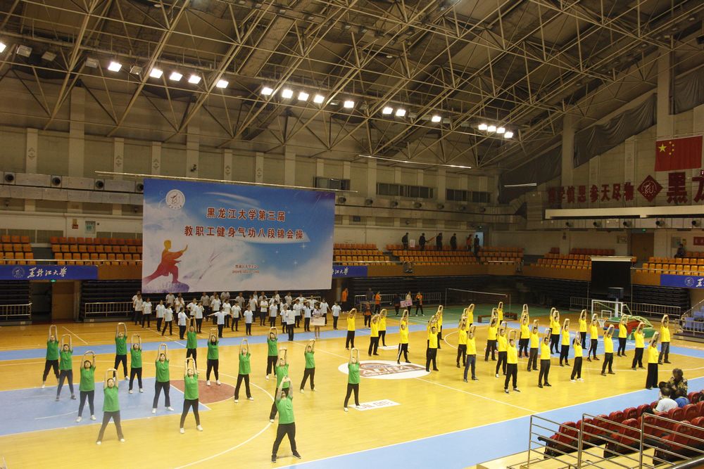 比赛正式开始,在23、24日两天比赛中,共有30个代表队,总计1000多人参加。各参赛队伍动作沉稳、柔和缓慢,圆活连贯,动静相兼,气机流畅,展现出八段锦独有的静态魅力,更彰显了beat365教职工积极向上的精神面貌。
