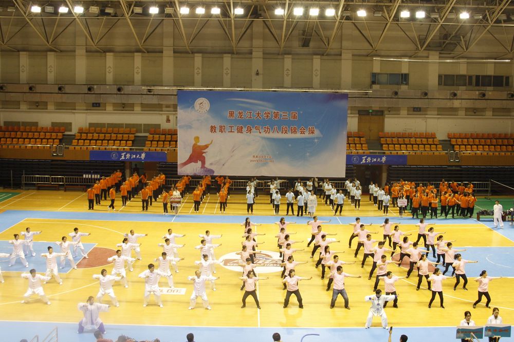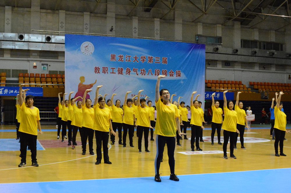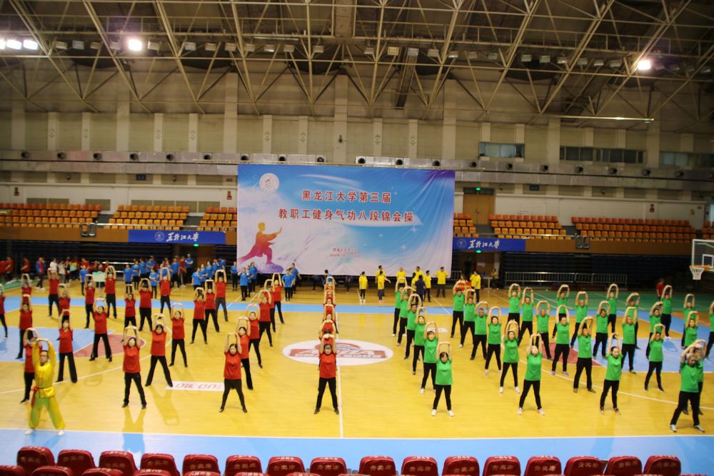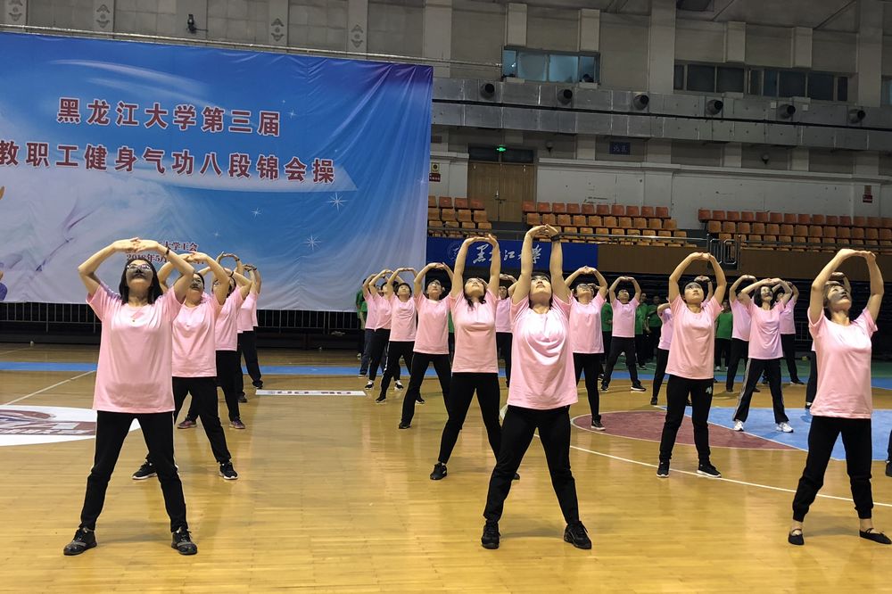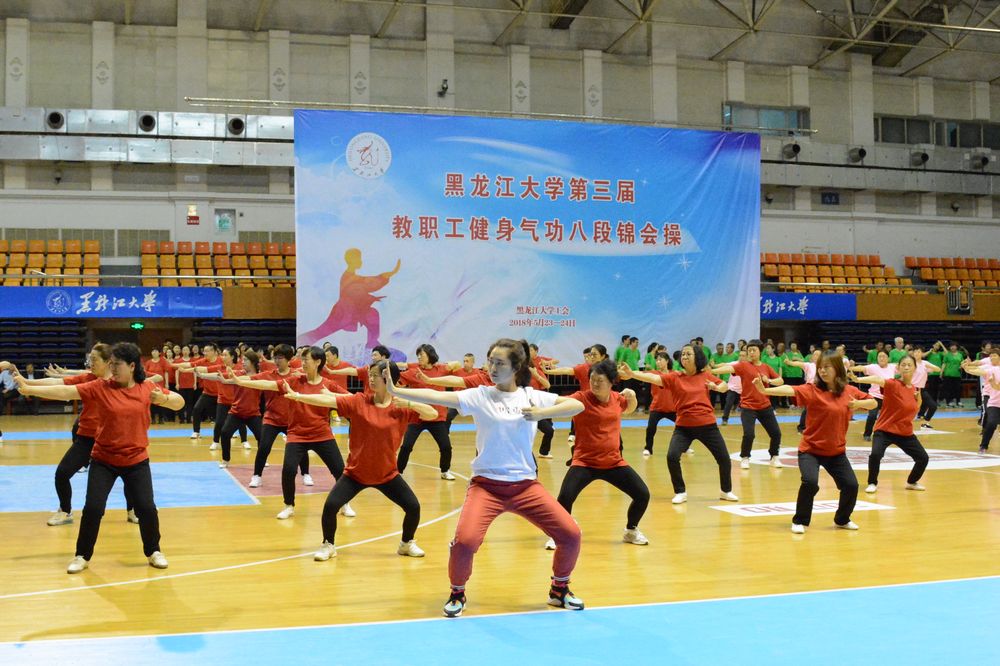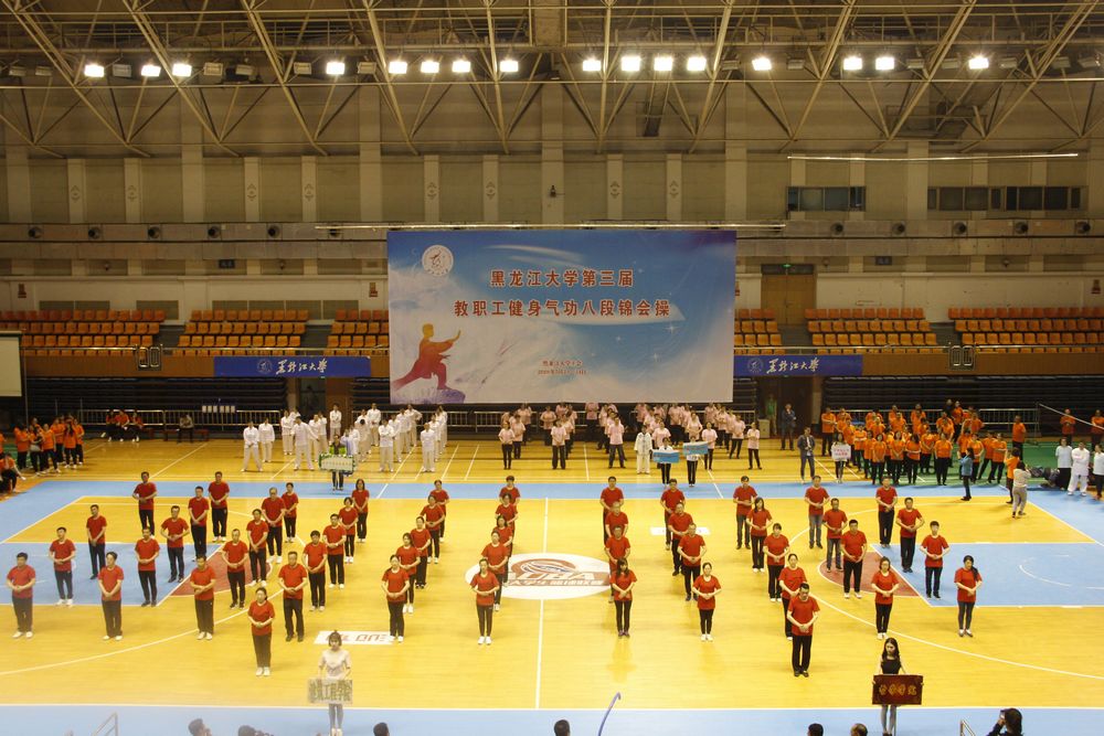 陈德明主席发表讲话。他指出,从2013年至今,在党政的大力支持下,在校工会和部门工会的不断努力普及推广下,在教职工的积极广泛参与下,健身操八段锦运动有了广泛的群众基础,得到了蓬勃的发展。健身操八段锦这项运动,已经成为健康黑大行动的一项重要工作内容。他希望通过这次活动,积极引导各单位和广大教职工更加自觉地进行健身锻炼,加入到全民健身的行列当中来,为身体素质的提高和全民健身事业的发展不懈努力,为学校深入实施“三大办学战略”,扎实做好“三篇大文章”作出新的更大贡献。