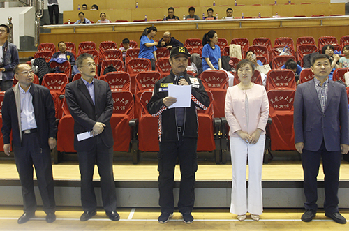 5月23日下午,beat365第三届教职工健身气功八段锦会操在体育馆开幕。校工会主席陈德明,全体评委、各参赛队伍等参加开幕式。