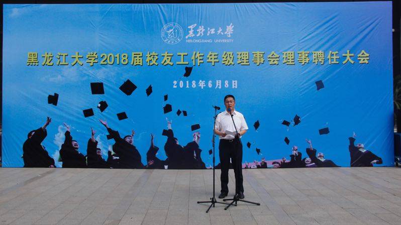陈文远副校长代表学校向新一届校友工作年级理事会成员表示祝贺。他介绍了黑大校友工作的整体情况,充分肯定了年级理事会制度作为不可或缺的重要平台为推动母校校友事业发展所起到的积极作用。他说,历届的年级理事是当之无愧的校友工作生力军,这支队伍能力卓越、充满朝气、心系母校、富有担当,很好地肩负起母校与毕业生之间信使、纽带的特殊使命。陈文远副校长将即将种下的校友林比作情怀之木、传承之林,象征着母校和学子永远根脉相连、守望相助、风雨共担、休戚与共。最后,他代表学校祝愿2018届毕业生事业有成,生活幸福,希望大家能常回母校,常回家!