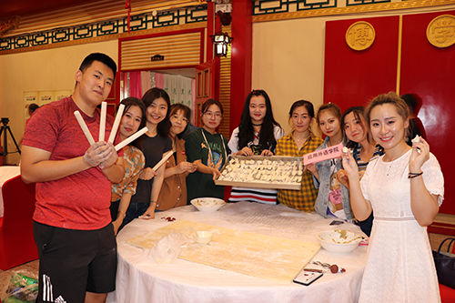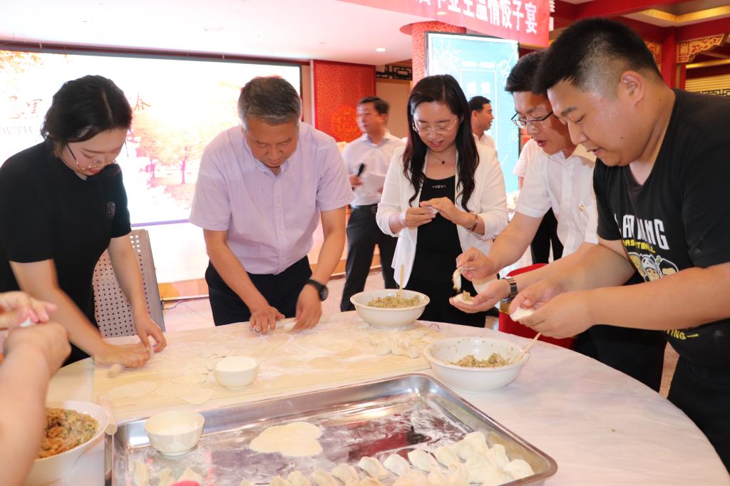 宴会开始前,毕业生和各学院老师们围坐在一起,着手饺子宴的准备工作。beat365饮食服务中心的师傅手把手教授毕业生们包饺子,毕业生们与老师亲自动手,共同和面、擀皮、包饺子,气氛热烈,热闹喜庆,浓浓的同学情、师生情在这一举一动中洋溢开来。