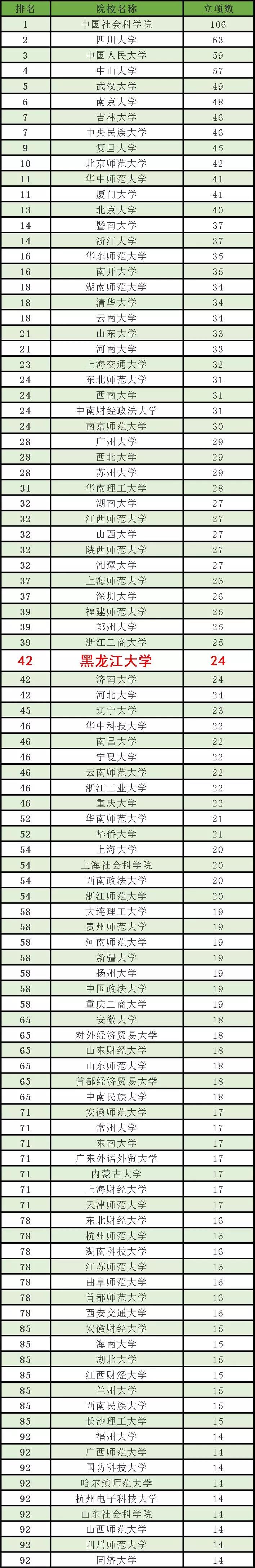 黑龙江省各单位2018年国家社科基金年度项目和青年项目立项数量汇总表