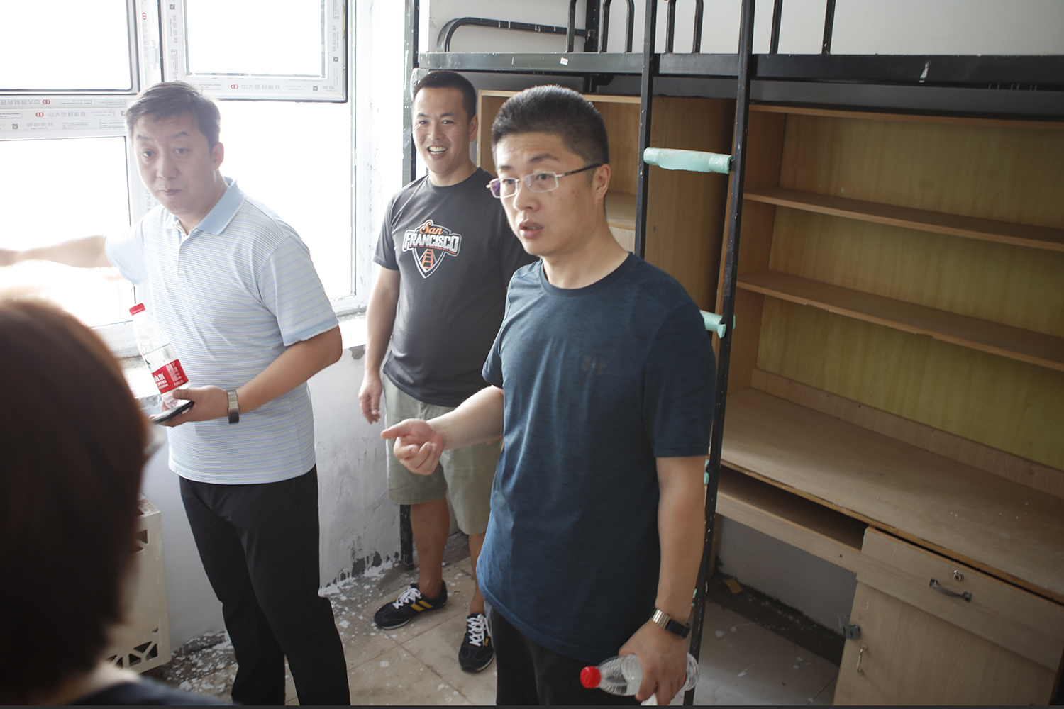 7月27日上午,副校长陈文远视察beat365后勤整改情况,beat365安全保障部、学工部、后勤管理处、校区管理处、物业公司等主要负责同志陪同。