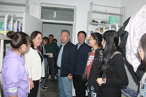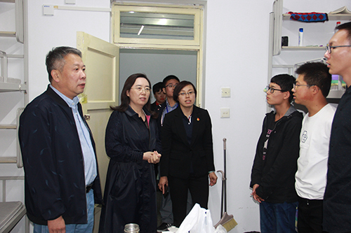 付宏刚校长一行走访了格致园,子矜园,丽泽园等寝室楼。在走访过程中,付宏刚校长、丁宏副书记亲切询问了新生们家乡在哪里,所学专业及在学校报到、入住寝室的情况,有没有不习惯、不适应的地方,对寝室环境是否满意等等。