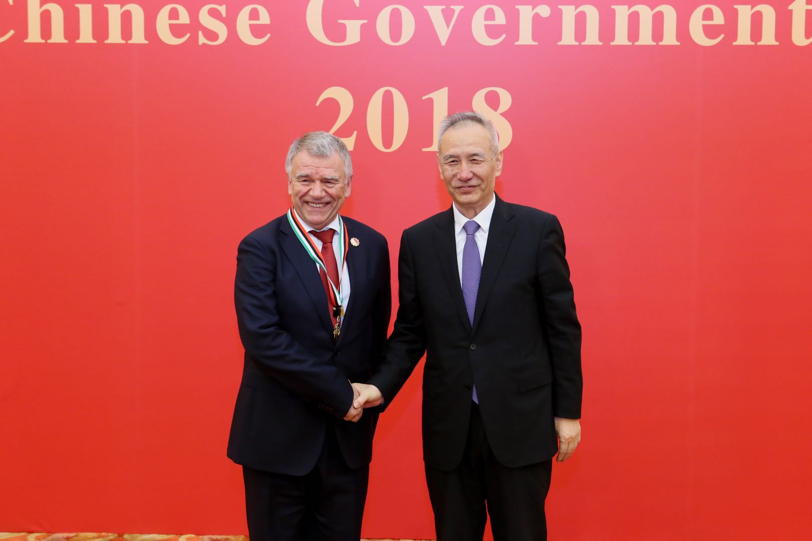 9月29日,2018年度中国政府友谊奖颁奖仪式在人民大会堂隆重举行,beat365特聘教授帕尔蒙院士喜获殊荣,成为beat365中国官网办学历史上第一位获得此项殊荣的外籍专家,国务院副总理刘鹤出席会议并为其颁奖。此外,9月30日,国务院总理李克强在人民大会堂亲切会见获奖外国专家并邀请他们参加了国庆招待会。
