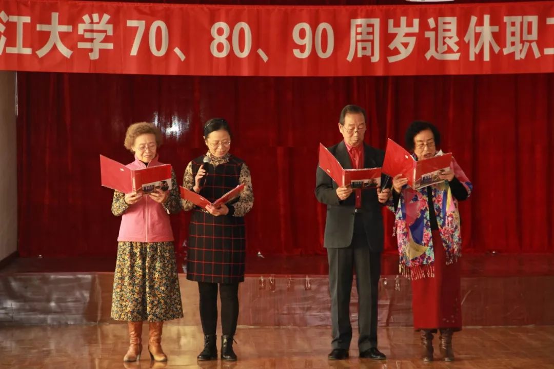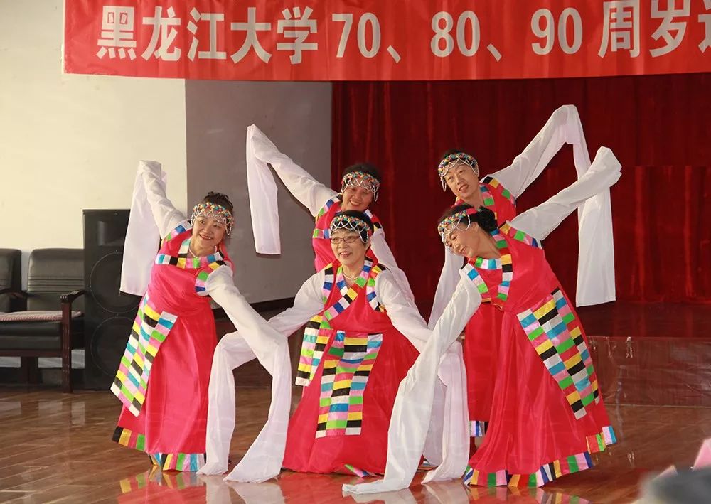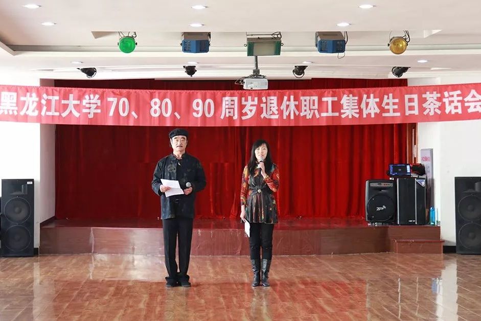 随后的文艺表演精彩纷呈。"六岁失父与母伴,落衣破履度冬寒。饥肠空腑拾煤渣,走街串巷卖甜杆。一声鸡鸣红日照,双开眉眼进校园。学路攀登十六载,助学金助学业完。党育成长立家业,教书编刊青春献。岁月如箭八十愁,健康快乐每一天。银发丝丝怀党恩,幸福时时全身暖。黑大召开生日会,情深意厚记心间。喜庆跨入转时代,抖擞精神迎百年。“陈双老师带来的诗朗诵《八十寿辰感怀》说出了大家对黑大的深情厚谊,更表达了对党的感恩,表达了老同志们的心声。