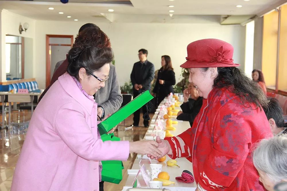 王永清书记和蒋晶洁副书记为参加集体生日的老同志送上生日礼物。