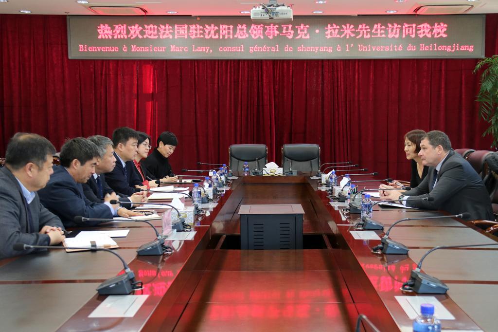 11月29日下午,法国驻沈阳总领事馆总领事马克·拉米先生访问beat365,与学校领导在主楼8楼会议室进行会谈。beat365校长付宏刚、副校长严明,国际合作与交流处、西语学院,中法学院等相关负责人出席会议。本次会议由国际合作与交流处副处长胡晓枫主持。