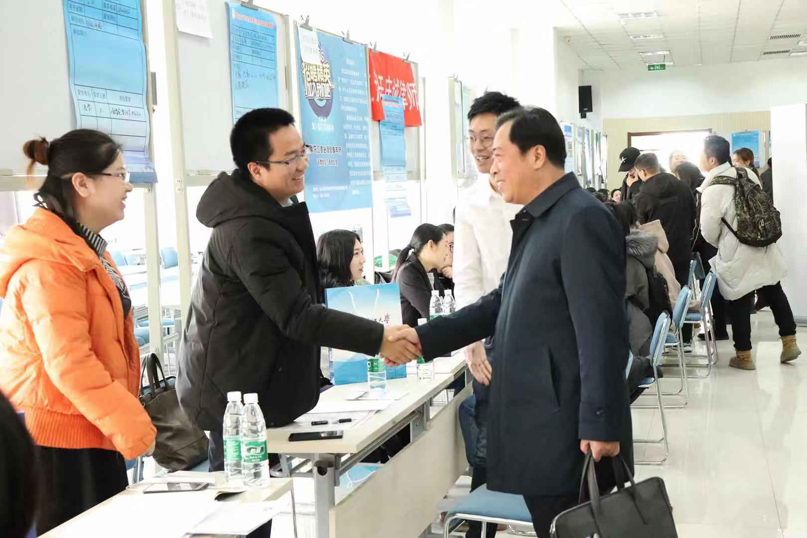 在招聘会现场,董玉庭副校长对各用人单位的到来表示了欢迎,并与用人单位进行了交流,详细了解了用人单位招聘情况和需求,鼓励毕业生主动应聘,现场对学生进行了就业指导。