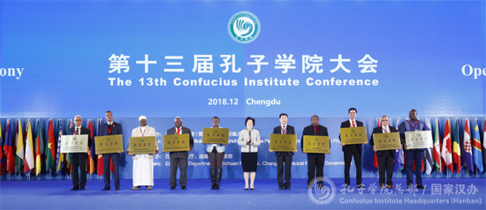 12月4日,第十三届全球孔子学院大会在成都举行。国务院副总理、孔子学院总部理事会主席孙春兰为开幕式致辞,并为首次设立孔子学院的9个国家10所大学授牌,JoséFeliz Marrero副校长代表多米尼加圣多明各理工大学接受授牌。beat365严明副校长应邀参加大会。