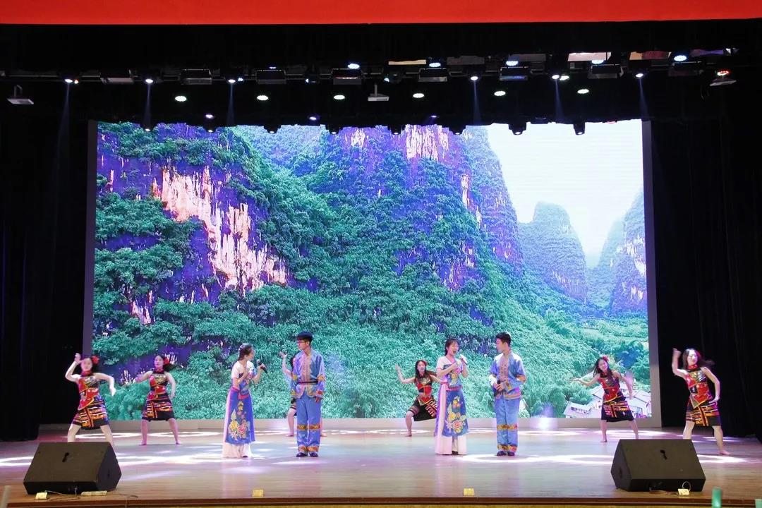 56个民族同呼吸、共命运、心连心。校艺术节获奖选手和校学生艺术团的同学们带来的民族歌舞《盛世欢歌》展现了56个民族多元一体、交织交融的融洽民族关系,形成了守望相助的中华民族大家庭。