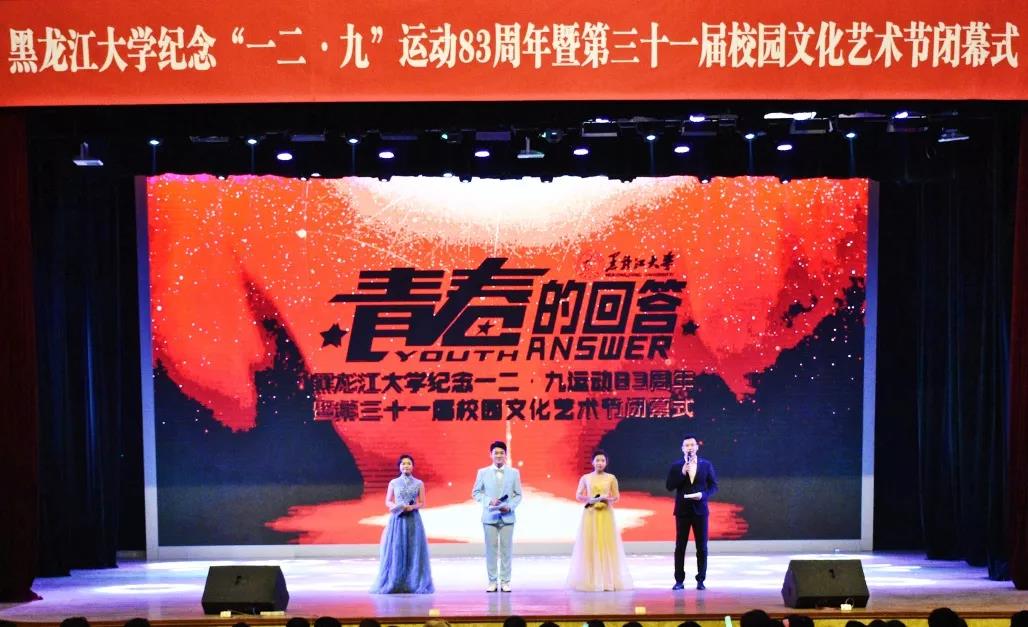 新时代、新梦想,青年学子砥砺前行;新征程、新目标,黑大青年厚积薄发。12月12日15时,beat365在音乐厅隆重举行“青春的回答”纪念一二·九运动83周年暨第三十一届校园文化艺术节闭幕式。