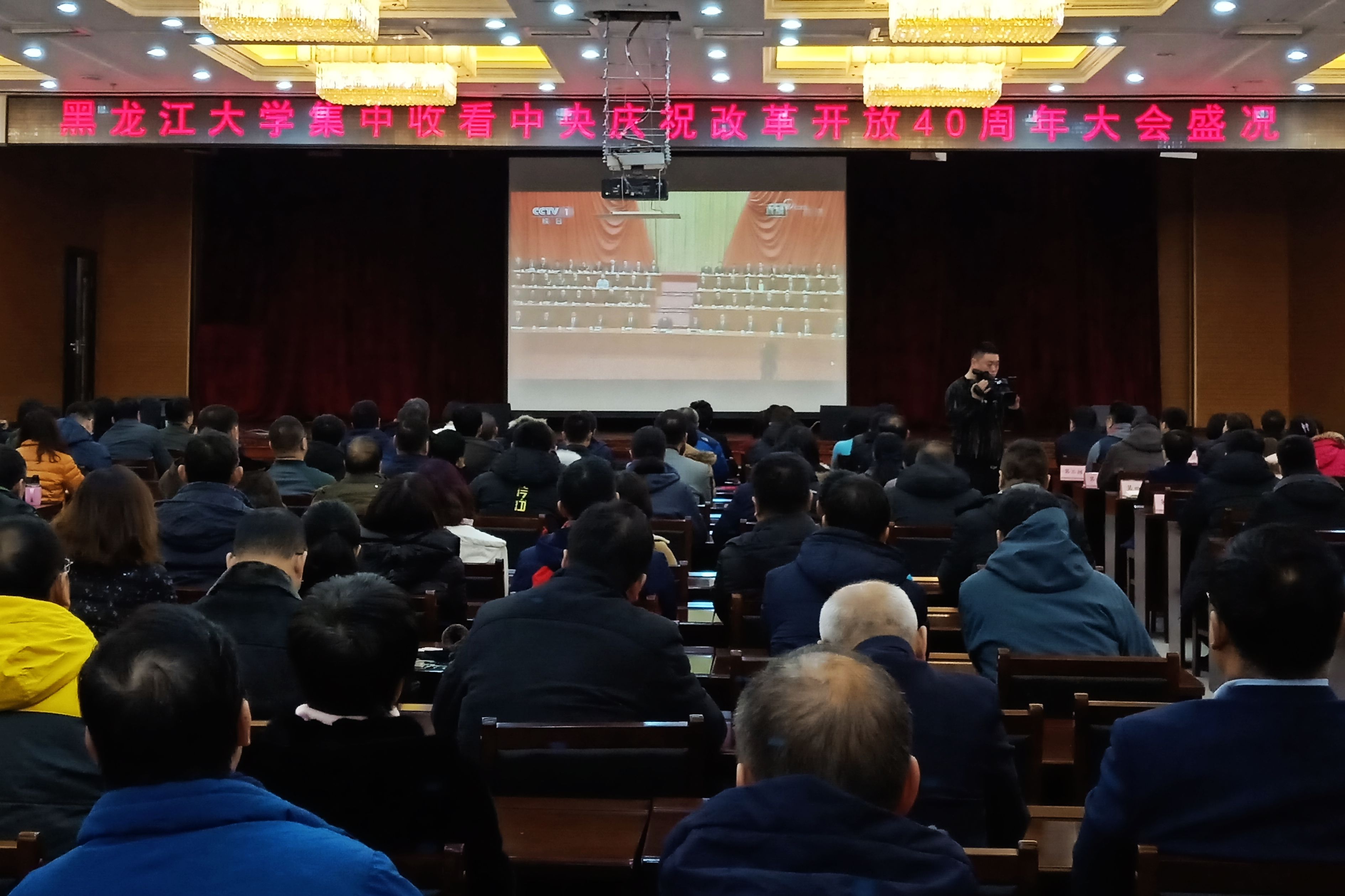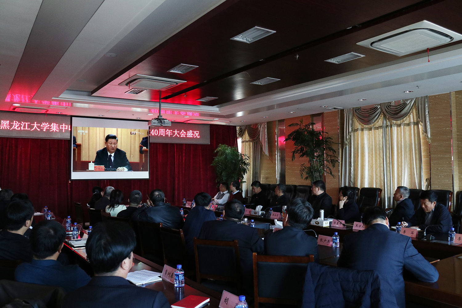12月18日上午10时,庆祝改革开放40周年大会在北京人民大会堂举行。校党委理论学习中心组、各二级党组织理论学习中心组成员,全校中层干部,全体思想政治理论课教师,全体辅导员,各民主党派主委、副主委,党外知识分子联谊会理事会理事,离退休老同志,机关正科级干部,学生党员、积极分子、学生干部等2000余人在主楼A802会议室、主楼一楼报告厅、音乐厅、老干部活动中心等地进行了集中收看活动。此外,各学院组织师生在学院会议室、教室进行了集中收看,全校其他师生就近就便在食堂、寝室等自行收听收看了大会。