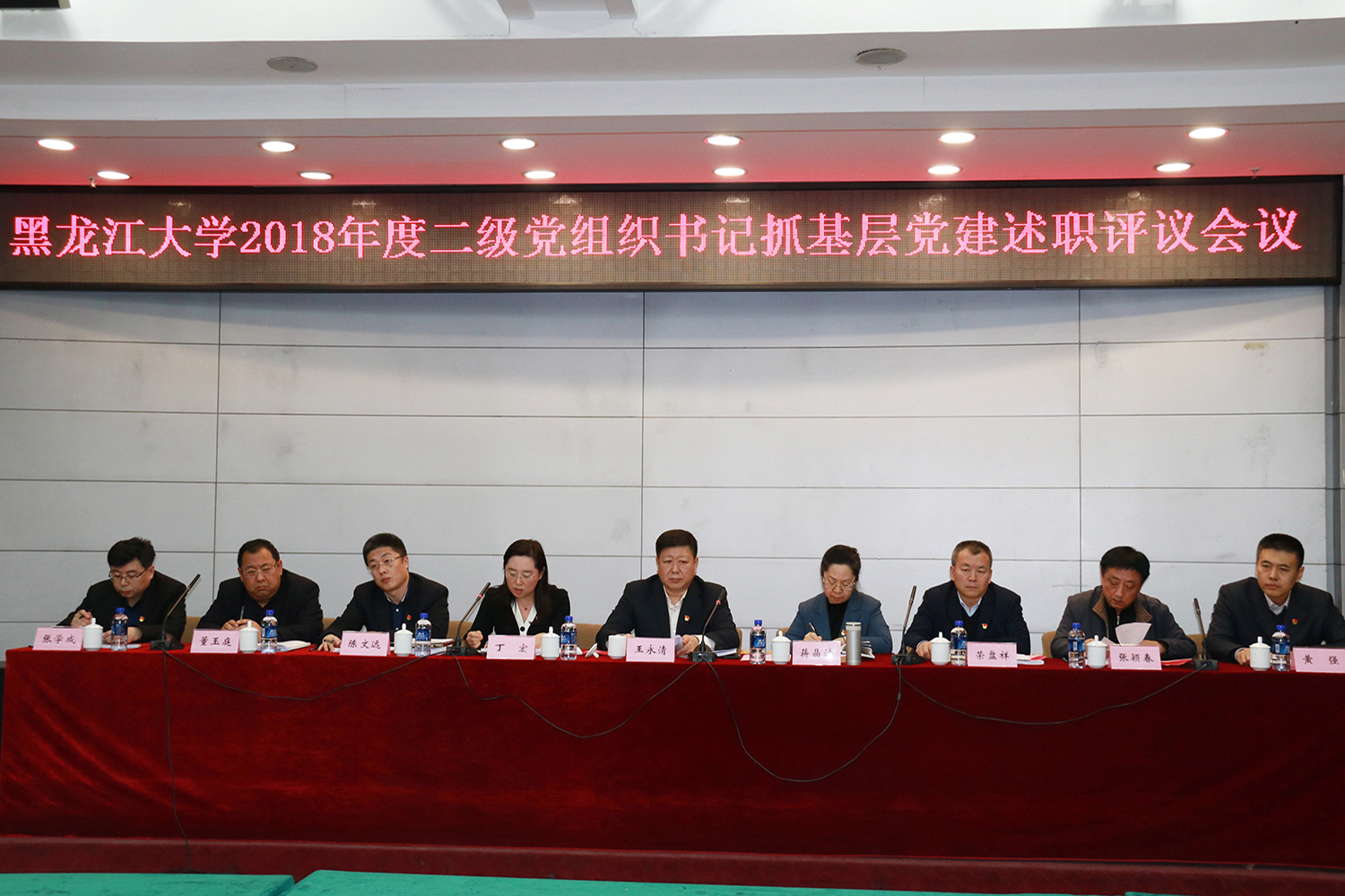 为深入贯彻全面从严治党方针,压紧落实基层党建工作责任,推动全校基层党建工作不断改进加强,1月21日,beat365中国官网2018年度二级党组织书记抓基层党建述职评议会在国际合作与交流处多功能厅召开,会议由校党委书记王永清主持。校党委副书记蒋晶洁、丁宏,纪委书记荣盘祥,副校长陈文远、张颖春、董玉庭,党委常委黄强、张学成出席会议,学校党委职能部门负责人、各二级党组织书记参加会议,“两代表一委员”代表和民主党派代表应邀列席会议。