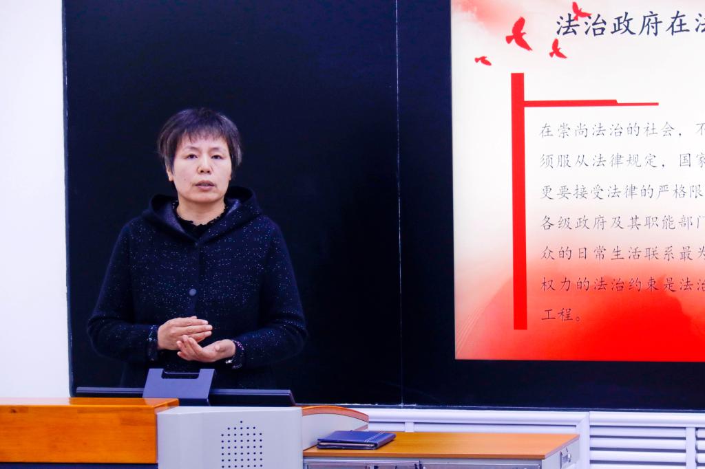 民革党员吕艳辉围绕《习近平法治思想与我国法治政府建设》主题进行分享。她从法制政府在法制国家建设中的重要地位、法制政府建设的基本内容、十八大以来我国法制政府建设的主要举措等方面对习近平法治思想进行解读,结合各地政府实践案例阐释了法治政府建设的根本方向、顶层设计遵循、核心内容、保障体系等方面内容。