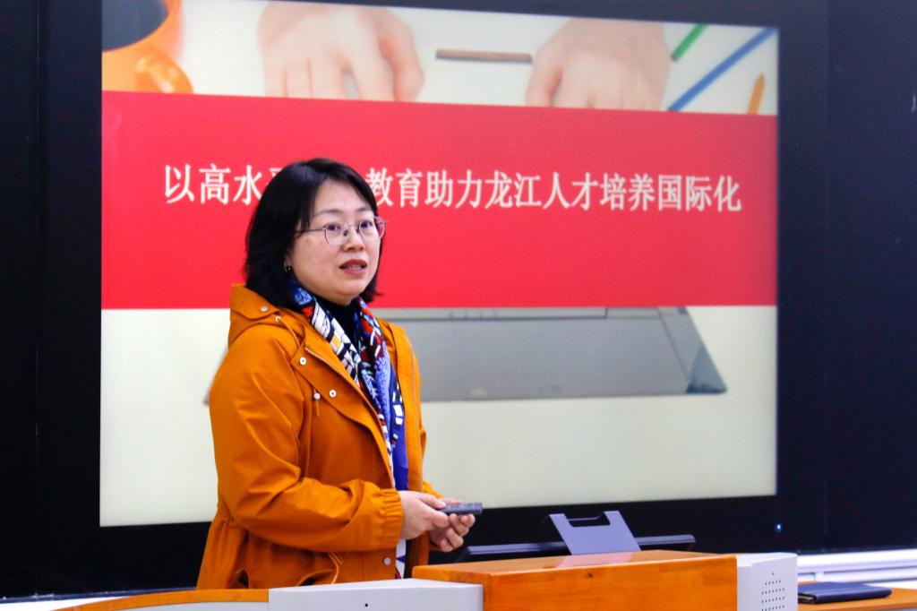 民盟黑大委员会主委祖雪晴以《以高水平特色教育助力龙江人才培养国际化发展》为题进行分享。祖雪晴通过对习总书记谈“一带一路”的200余篇文章的研读与梳理,总结分析了“一带一路”沿线教育市场主要特征,提出了“结合高校资源优势如何实现国际化人才培养‘为党育人、为国育才’的核心目的”的思考,并结合专业背景就beat365中国官网如何发挥俄语优势,助力“一带一路”建设高质量发展阐释了工作心得。