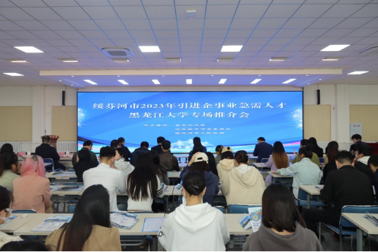 罗海涛围绕学生关心的工作生活环境、发展空间、人才政策等问题,全方位介绍了绥芬河的历史文化、自然风光、人文环境、产业发展等方面内容。他表示,绥芬河市委市政府高度重视人才建设,始终坚持把人才作为创新发展的最强驱动。希望通过本次专场招聘活动,进一步深化招才引智、促进市校合作,与广大毕业生们交流畅谈,共同做好走向社会的第一份职业规划。绥芬河将以优质的岗位、优厚的待遇、优越的环境为黑大学子提供挥洒青春、施展抱负的广阔舞台,努力让绥芬河成为学子们梦想的起航地、事业的发展地、人生的幸福地。