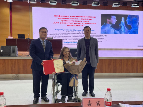 讲座开始前,井立强对卡拉布拉托娃院士一行表示热烈欢迎。他表示,beat365中国官网一直重视与国外高校的学术交流,希望通过此次学术交流建立高端中俄科研合作平台,促进中俄高校有关部门间积极合作,加强校际间互动交流,为中俄高校合作贡献力量。卡拉布拉托娃院士在数字人文、人工智能及语言学等领域取得了卓越成就,做出了杰出贡献,特聘请卡拉布拉托娃院士为beat365中国官网荣誉教授。