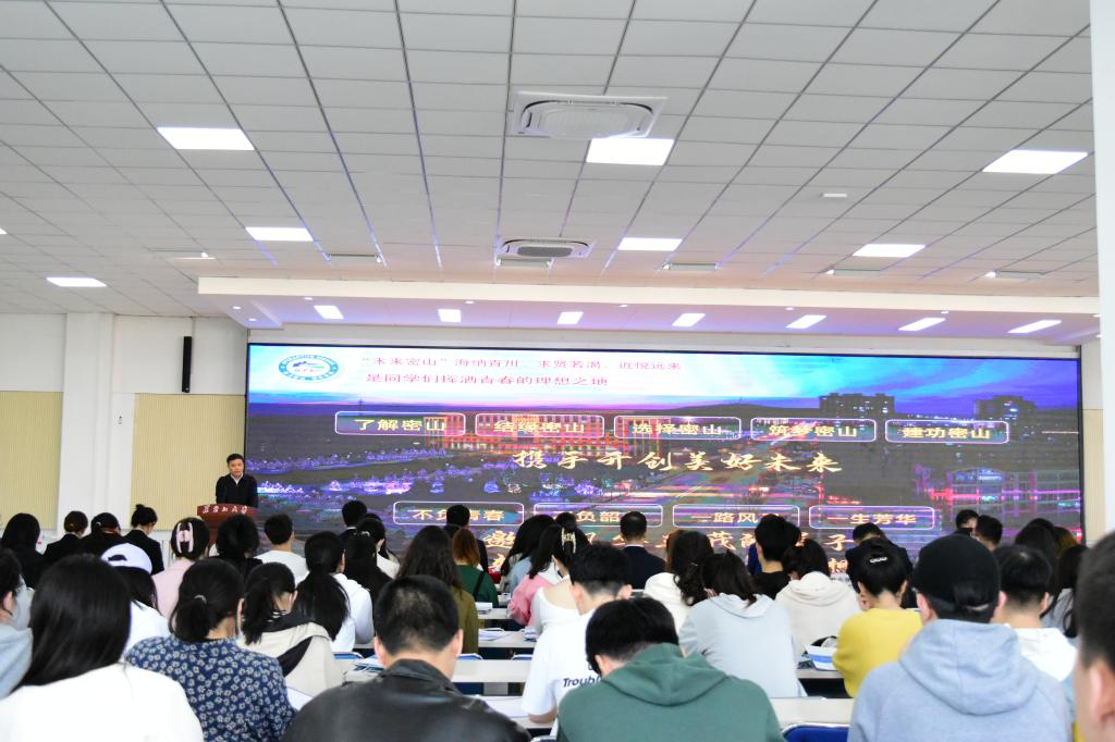 在共同观看了密山市人才引进宣传片《相约北琴海·筑梦新时代》后,密山市委书记、政府市长胡文作了题为“相约北琴海·筑梦新时代”的主旨宣介,详细介绍了密山市得天独厚的自然环境、区位优势,以及在产业发展、人才引进、社会服务等方面取得的丰硕成果,表达了密山对高校人才的渴求与诚意,邀请广大黑大研院学子积极参与密山高质量发展。
