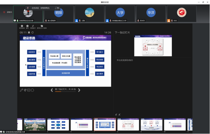 教学指导委员会的企业代表围绕安恒网络攻防教育平台和校企共建实验室、新华三星火计划人才中心、亿林大数据综合实训云平台等近期重点建设项目开展汇报研讨。