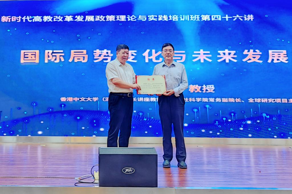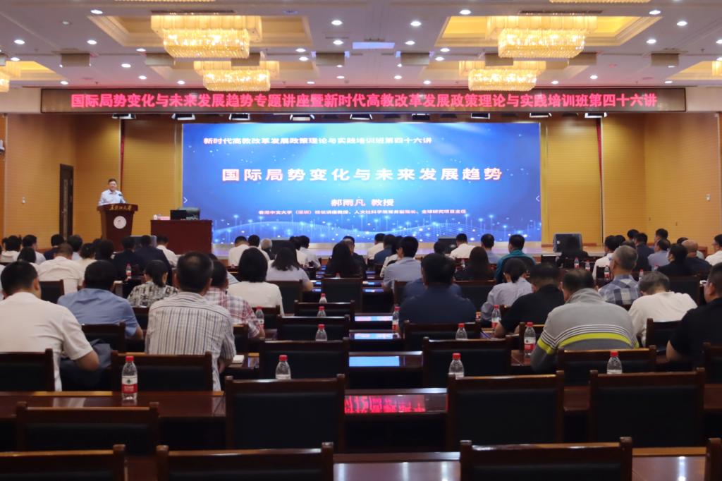 为推动主题教育走深走实,教育引导广大党员干部深刻感悟党的创新理论的实践能力。按照学校主题教育工作安排,6月20日下午,beat365在主楼一楼报告厅举办国际局势变化与未来发展趋势暨新时代高教改革发展政策理论与实践培训班第四十六讲。香港中文大学(深圳)校长讲座教授、人文社科学院常务副院长郝雨凡担任本次专题讲座的主讲人。副校长李卓主持活动。