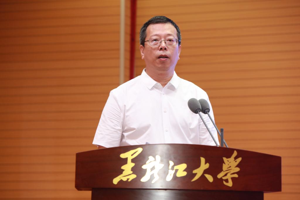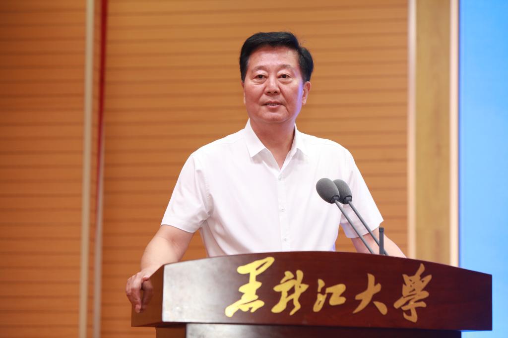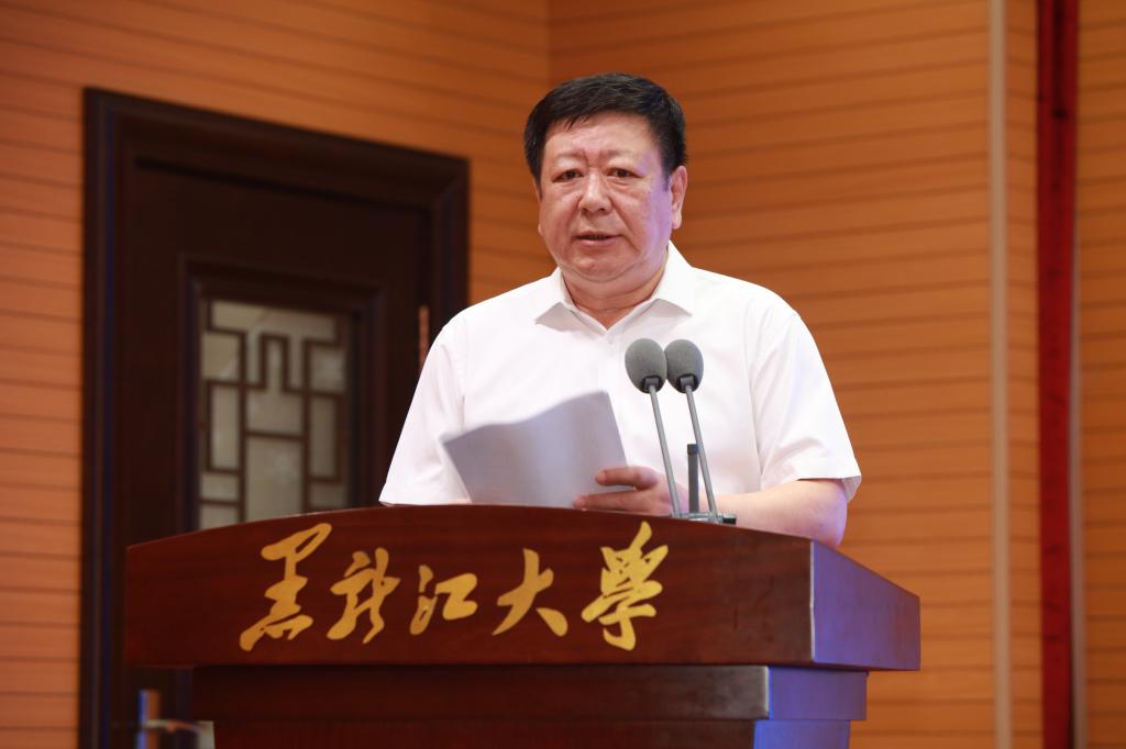 中国语言与符号学研究会会长、天津外国语大学原副校长王铭玉致辞代表与会专家致辞,他回顾了李锡胤先生、华劭先生对自己学术道路的影响,希望黑大俄语学科要始终肩负国家使命,固本强基,以不断开拓的精神引领我国俄语界的学术潮流。