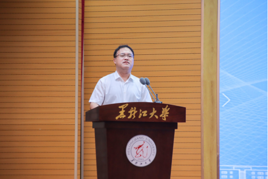 南京大学教授张剑荣代表国家级实验教学示范中心联席会对东北赛区竞赛委员会和竞赛组织委员会表示感谢,他介绍了本次竞赛流程和东北赛区参赛作品概况,希望参赛同学以饱满的竞技热情,顽强的拼搏精神投入竞赛,不断提升创新意识和实践能力。