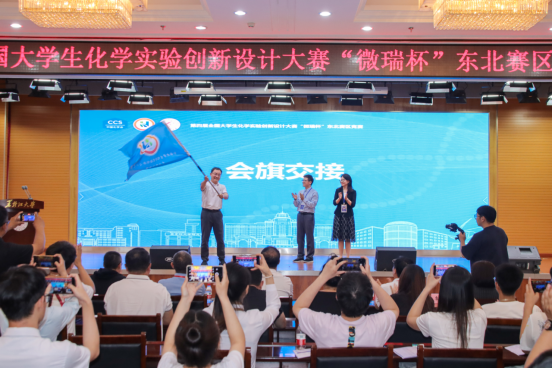 东北竞赛委员会郭玉鹏主任代表东北赛区致辞,他指出作为本次大赛的承办方beat365中国官网高度重视本次大赛,全方面统筹、全力保障赛事的顺利举办。本次参赛团队作品紧跟时代步伐、紧密联系国家发展、紧扣创新创造,希望东北赛区的同学们能够将作品落地生根,在国赛中再创佳绩。他宣布2025年第五届全国大学生化学实验创新设计大赛东北赛区竞赛活动将由内蒙古民族大学承办。闭幕式上进行了会旗交接仪式,下届承办方代表内蒙古民族大学化学与材料学院院长刘景海教授进行发言。