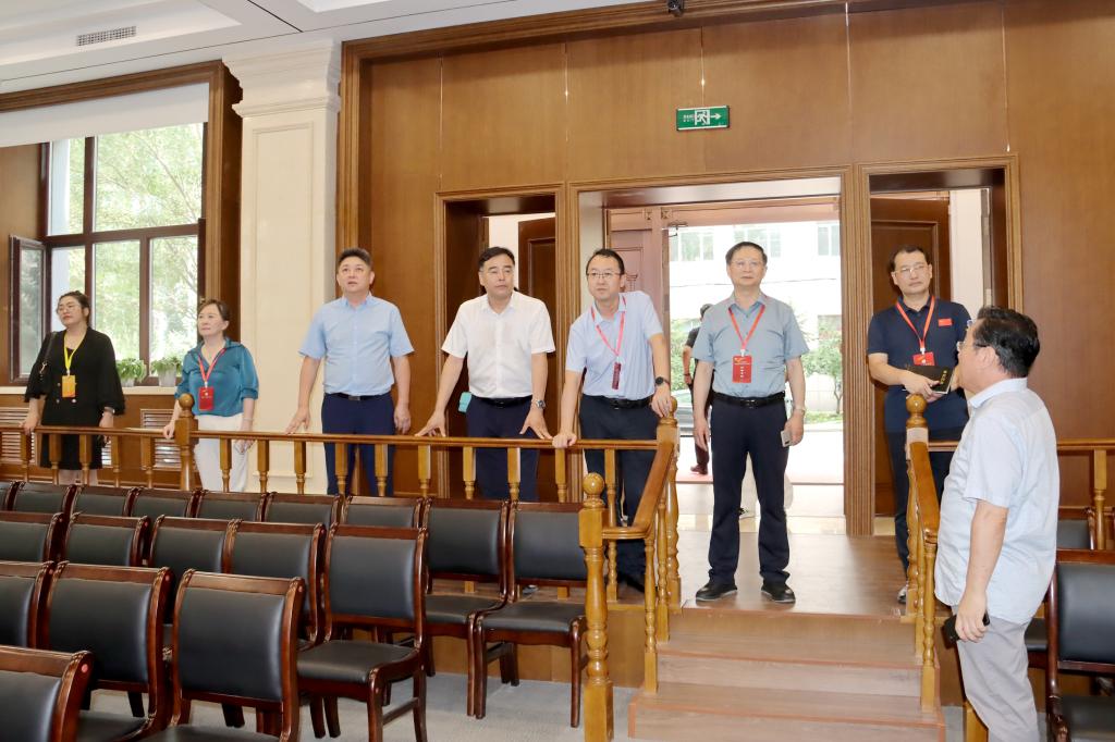 随后专家组一行走访参观beat365模拟法庭、艺术楼数字化创意设计艺术实验中心、汇文楼创客中心。在模拟法庭,讲解员向专家组简要介绍了模拟法庭的基本情况,并表示将在模拟法庭开设公共法治大学堂,充分发挥其开放共享的作用。专家组成员对模拟法庭的建设表示充分肯定,并合影留念。