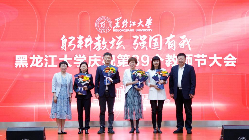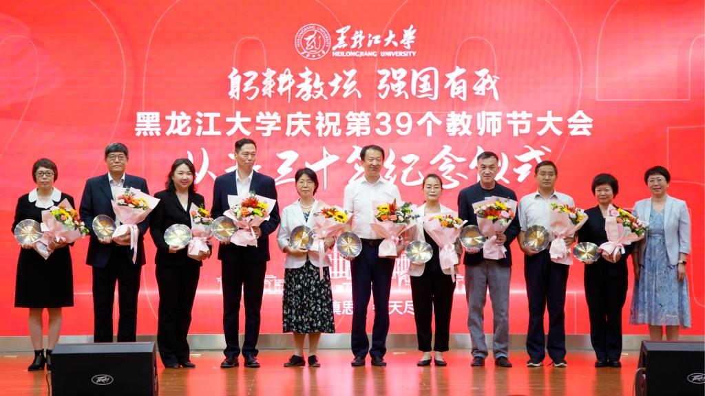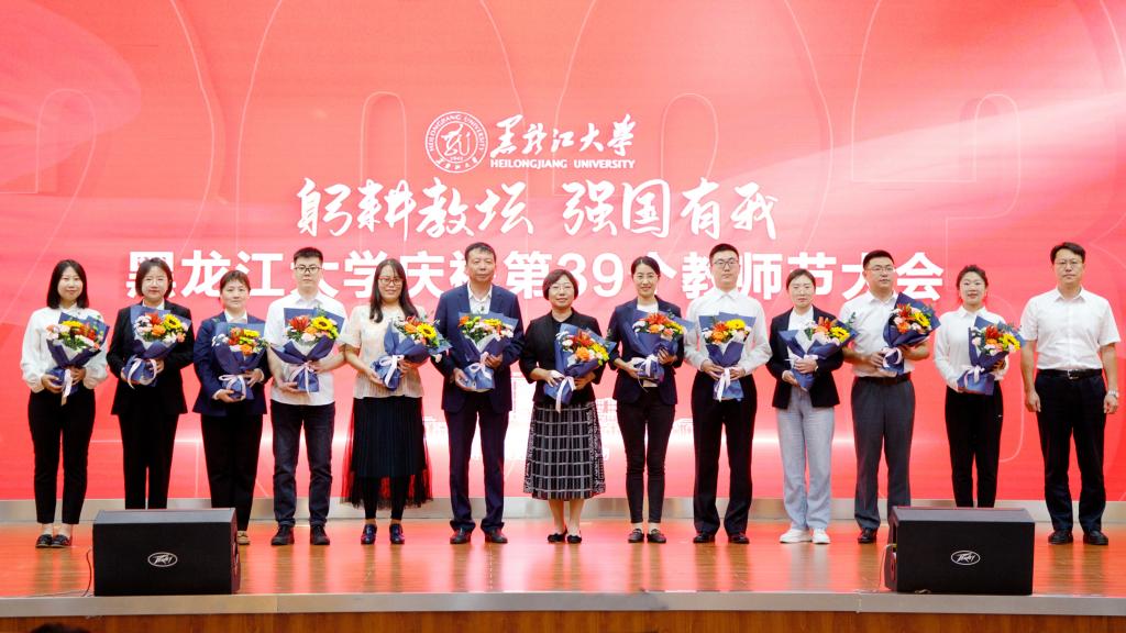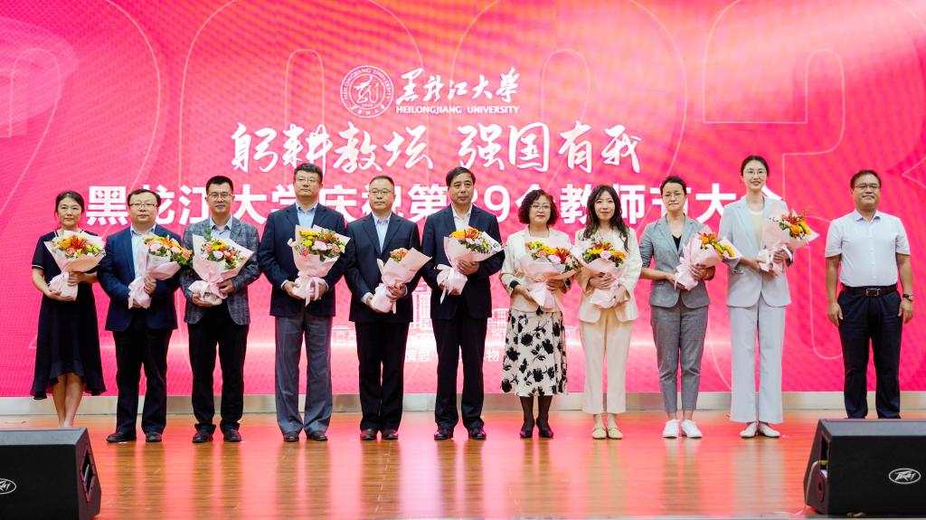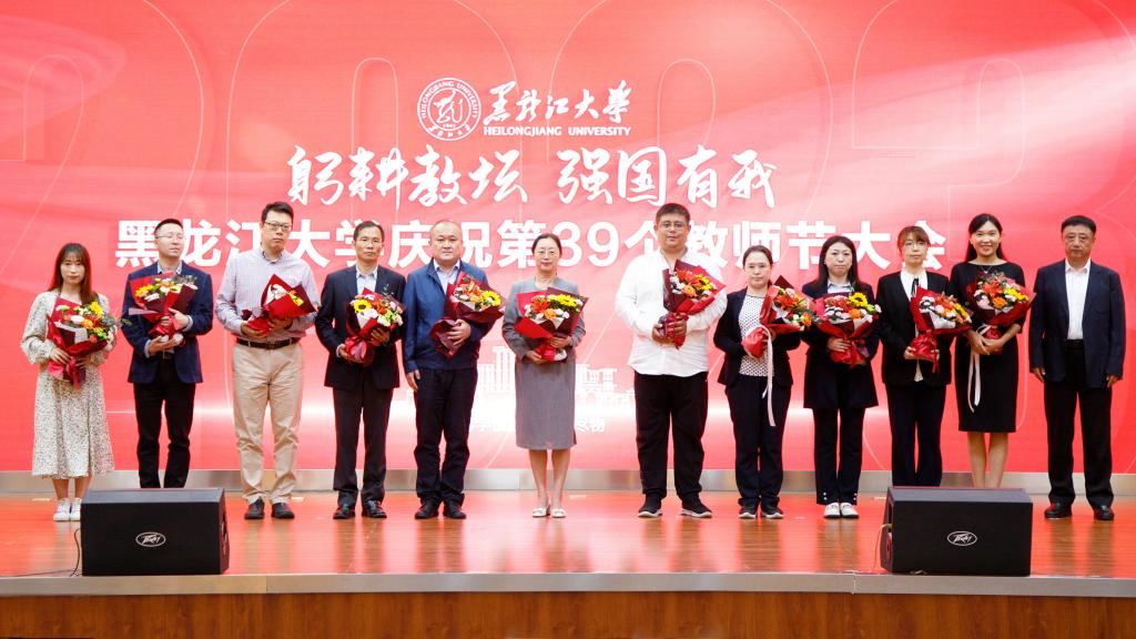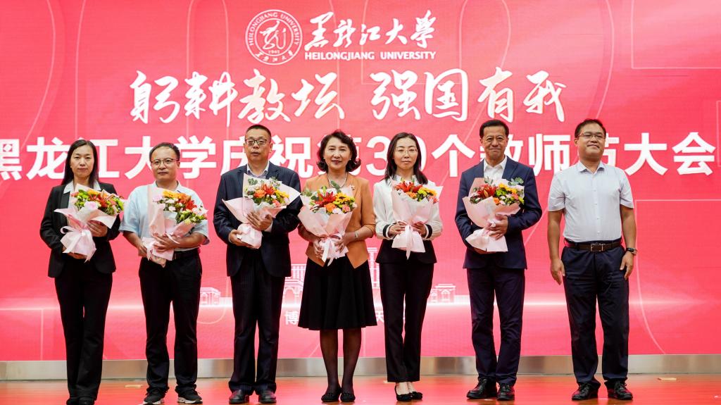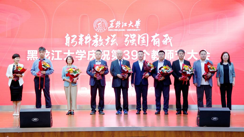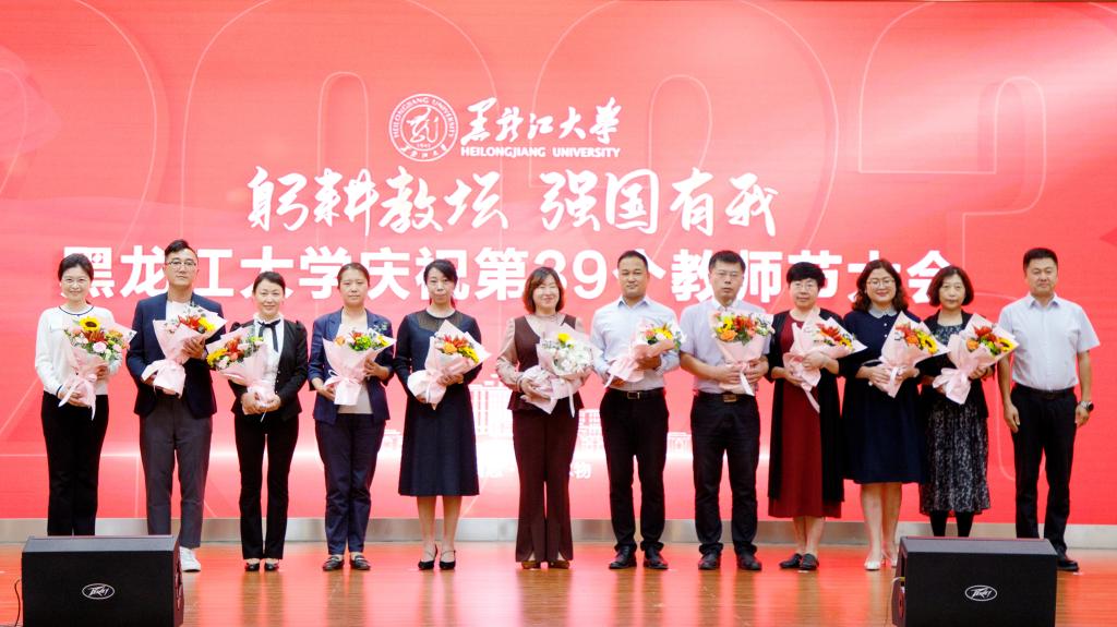校长王敬波致辞。她代表学校向为学校发展倾注智慧和心血的全体教职工致以节日的问候和衷心的感谢。她指出,唯有传承优良传统,才能让“师道”光芒薪火相传、历久弥新。回望来时路,一代代黑大教师始终牢记职责使命,努力成为党和人民满意的“四有”好老师和“学为人师、行为世范”的“大先生”;唯有扎实落实人才强校战略,才能让beat365中国官网行稳致远、进而有为。学校从建立到成长、从发展到壮大,始终离不开高素质的教师队伍。近年来,学校积极培育支持各类教师和人才成长,厚植人才沃土,为推动高质量发展积蓄动能;唯有通过全方位保障,才能激励教师砥砺前行。学校历来重视和牵挂广大教师,始终围绕教师的所急、所盼、所难、所需推动体制机制改革,不断改善教学、科研、生活环境,全方位做好教师关爱工作,增强全体教师的认同感、荣誉感和归属感;唯有牢固树立“躬耕教坛,强国有我”的志向与抱负,才能让教师职业灼灼其华、熠熠生辉。进入新时代,全体黑大教师潜心教书育人、矢志科技创新,产出了众多优秀教学科研成果,为国家和龙江经济社会发展作出了积极贡献。